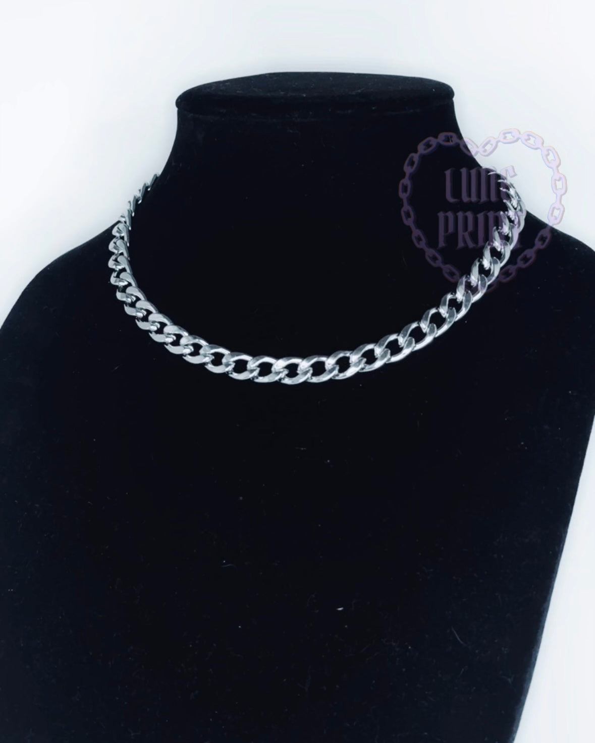 A collection designed with layering, stacking, and elevating your jewelry styling in mind. Created using the high quality, stainless steel chains you know and love from our slip chains, loop chokers, and lasso chains. This chunky curb chain is made to last as it is water proof, tarnish proof, and will never leave a green tint on your skin.