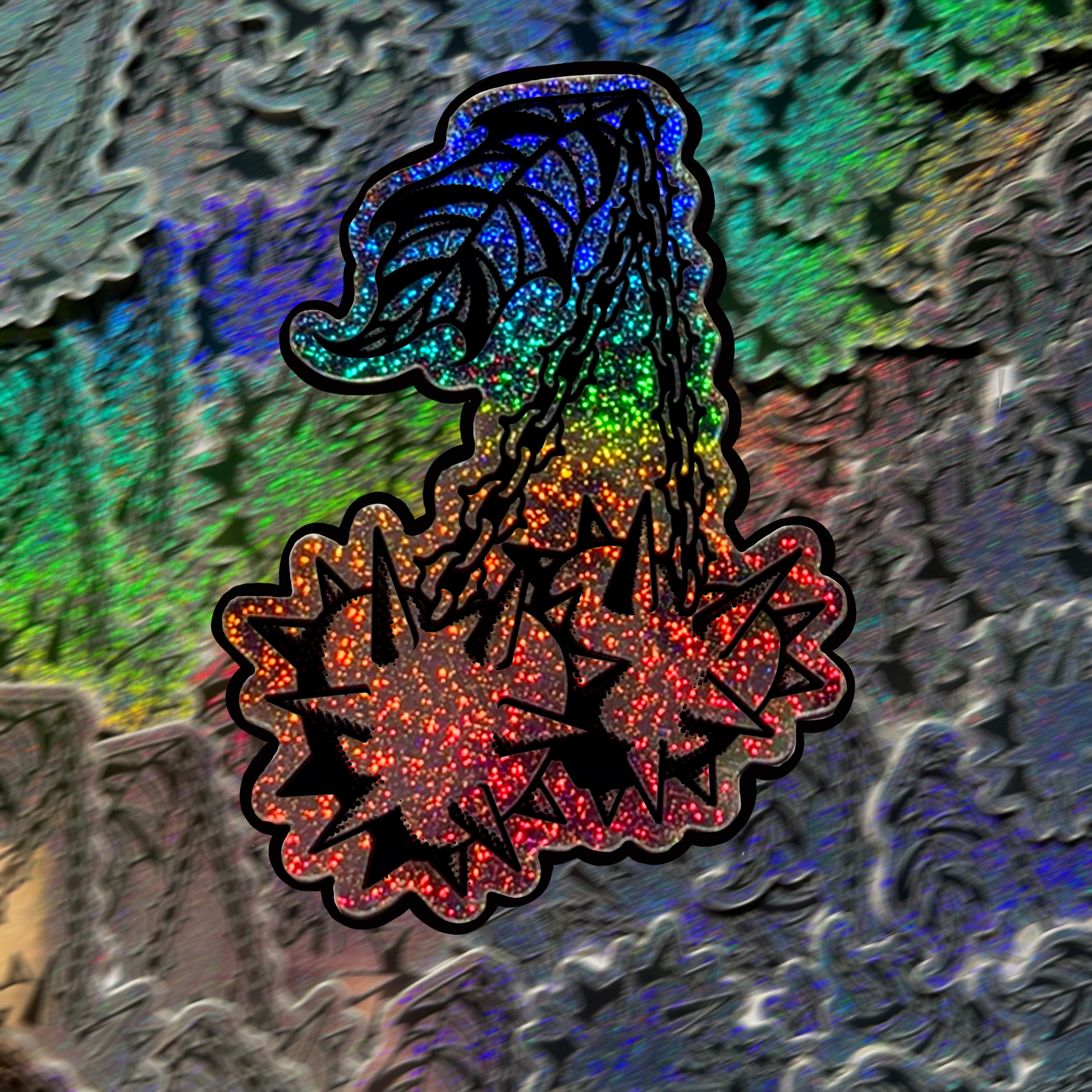 2.5" x 1.5" / Printed on holographic vinyl sticker paper.