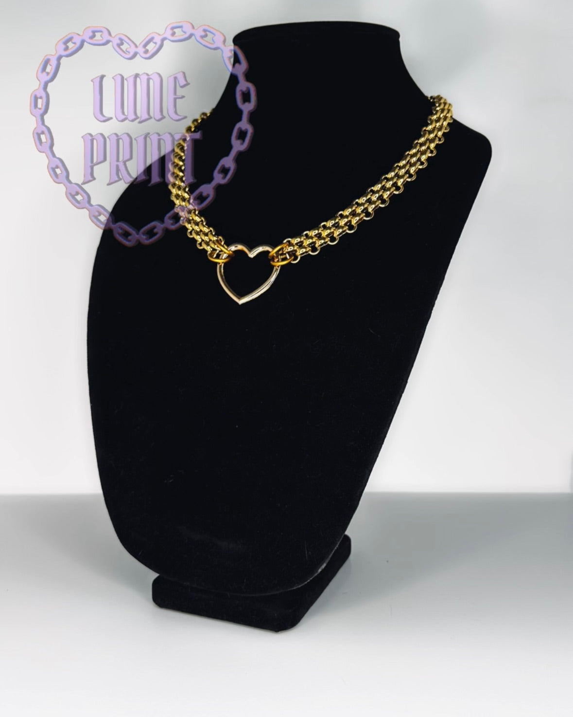 The necklace is 20” long made using a stainless steel chain and connected in the back with a 15 MM lobster claw clasp. The center piece hardware is made from zinc alloy and should be kept dry or sprayed with an acrylic varnish if you plan to wear the bubble chokers daily.