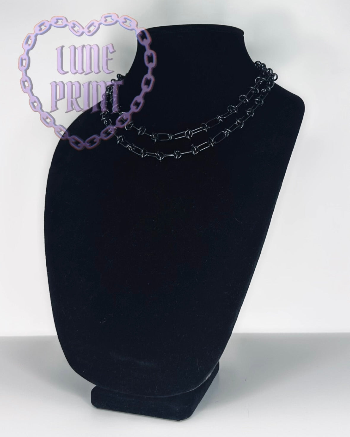 The twisted link choker is 17” long from the inside chain and is made using a stainless steel chain and connected with a 15 MM lobster claw clasp. Chokers can be longer upon request, please leave a note at checkout in the special order instructions and purchase an extension listing in order to have your necklace extended.