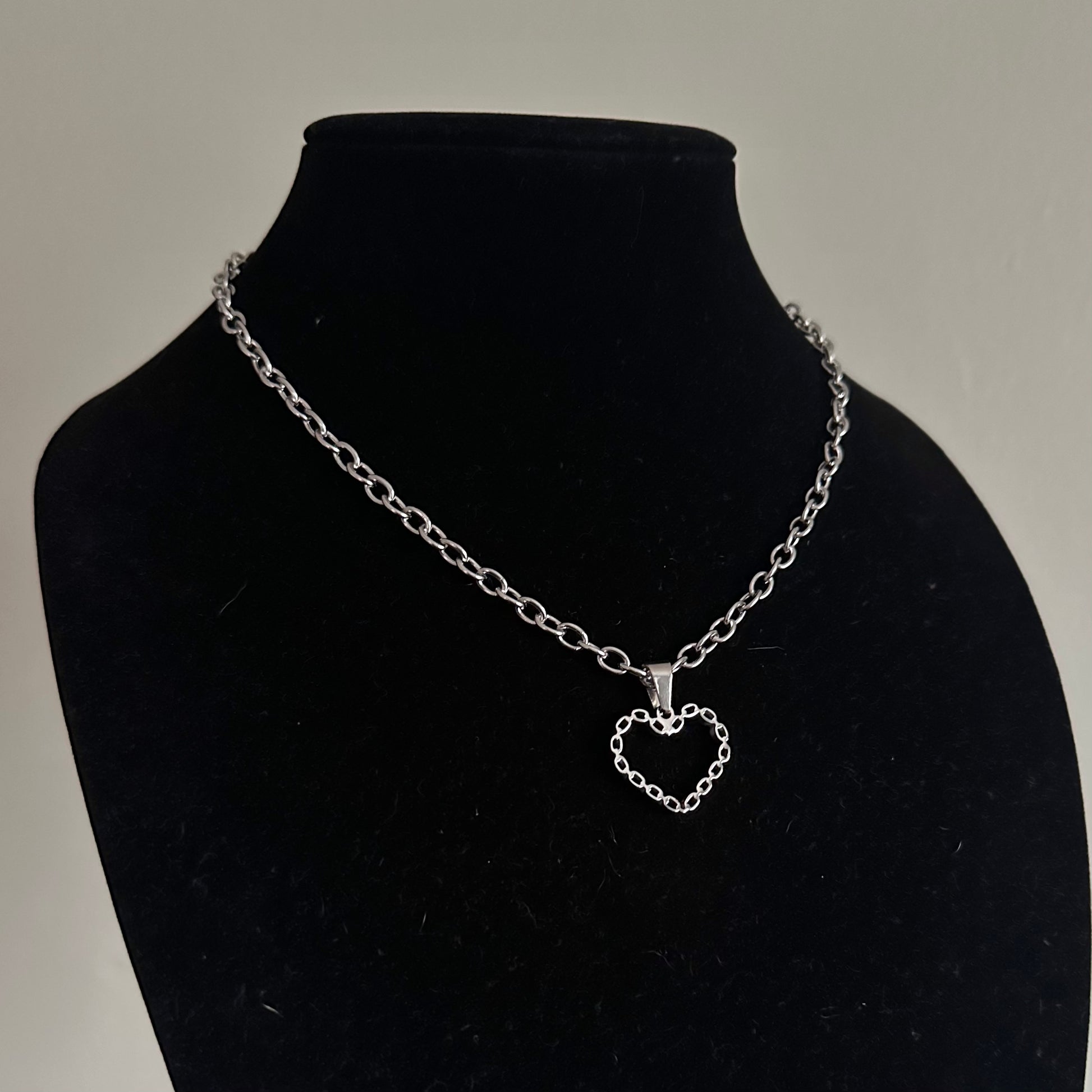 The Love Link Chain necklace is entirely made of stainless steel, including the chain, pendant, and closure claps. It measures 18 inches long but can be extended with an extension listing at checkout. Please leave the length you need at check out in the special order instructions. The Love Link necklace is available in silver and gunmetal, be sure to select which color before adding this product to your cart.