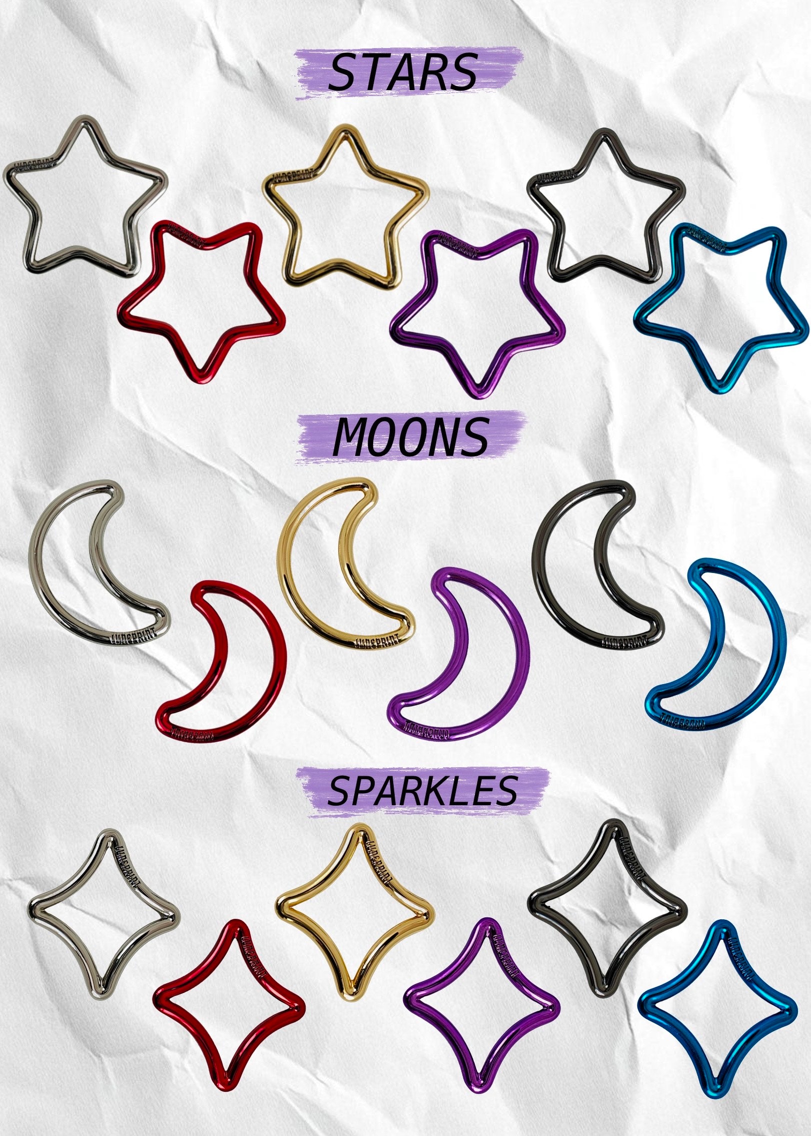 LunePrint is now selling our unique, custom hardware as individual pieces! Shop from classic O-Rings, hearts, and carabiner flower and bone clips - or select from LunePrint exclusives like our star, moon, and sparkle hardware! Use these for crafts, jewelry making, or as extra hardware to switch out on your LunePrint boot charms!